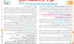 آگهی مناقصهعمومی نوبت دوم دو مرحلهای شرکت پتروگوهر فراساحل کیش در نظر دارد سرویس نمودارگیری (WIRELINE LOGGING AND RELATED SERVICES) پروژه رشادت را (به شماره مناقصه ۳۳-۴۰۴) از طریق برگزاری مناقصهعمومی دو مرحلهای واگذار نماید. لذا از شرکتهای واجدشرایط دعوت میشود از مورخ ۰۵/۰۵/۱۴۰۴ لغایت ۰۷/۰۵/۱۴۰۴ جهت دریافت اسناد مناقصه از ساعت ۰۸:۰۰ صبح الی ۱۳:۰۰ […]