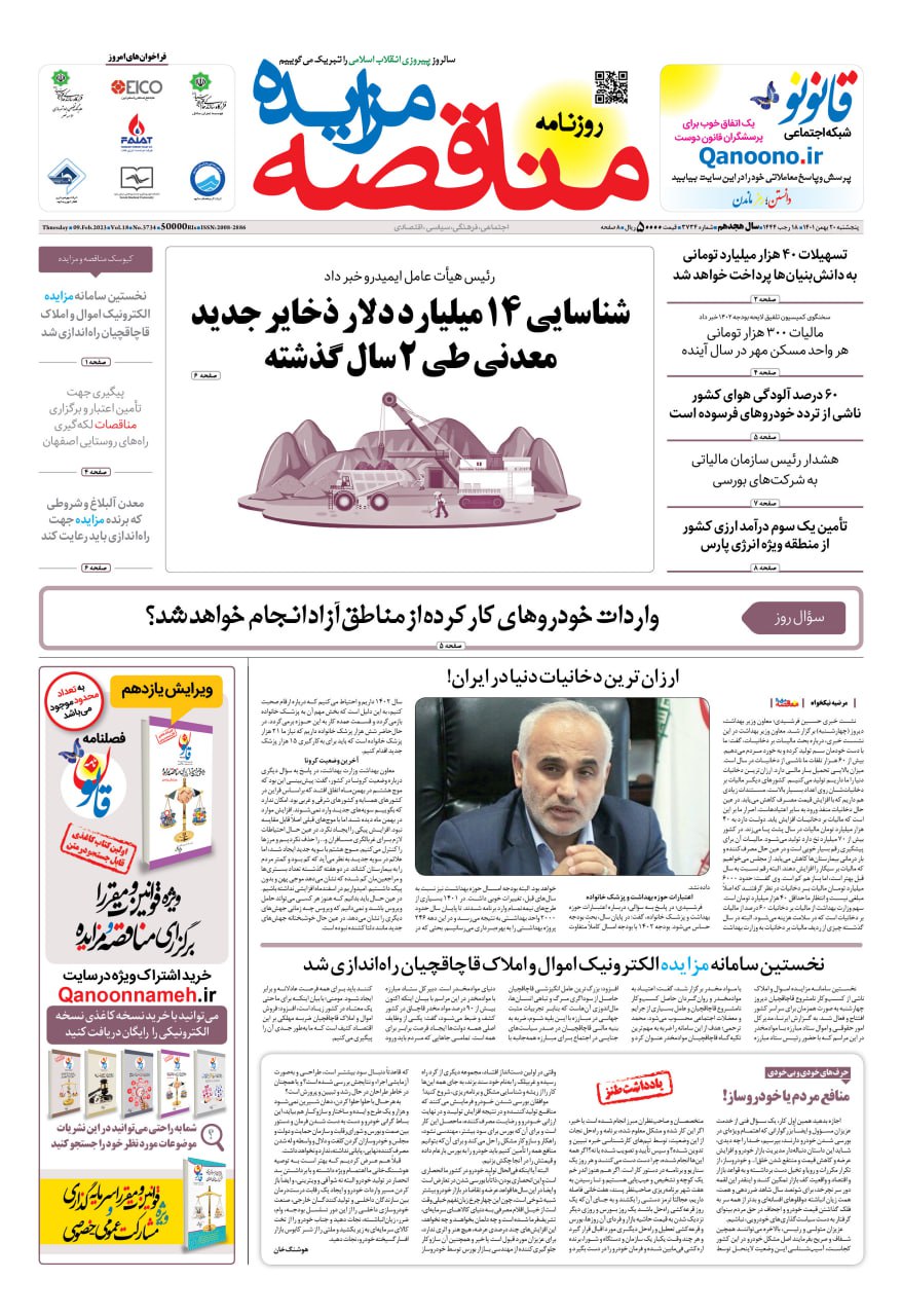 روزنامه مناقصه مزایده ۳۷۳۴ (۰۱٫۱۱٫۲۰)