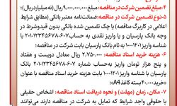 مدارک مورد نیازجهت دریافت اسناد مناقصه: اصل فیش واریزی