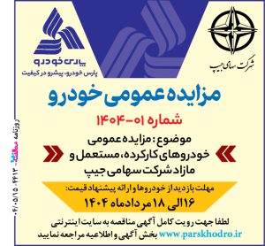 ۴۴۱۳ مزایده – شرکت پارس خودرو – فروش خودرو مازاد جیپ