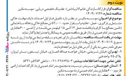 آگهی مناقصهعمومی یک مرحلهای نوبت اول موسسه حرا در نظر دارد تهیه، تامین، بارگیری، حمل، اجرا، تست و تحویل تاسیسات مکانیکی و الکتریکی در ضلعهای شمالی، جنوبی و شرقی استادیوم یکصد هزار نفری فوتبال ورزشگاه آزادی تهران را از طریق برگزاری مناقصهعمومی با ارزیابیکیفی متقاضیان، مطابق با شرایط مندرج در اسناد مناقصه به مناقصه گر […]