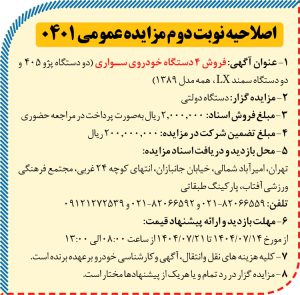 ۴۴۶۱ مزایده – دستگاه دولتی – فروش خودرو