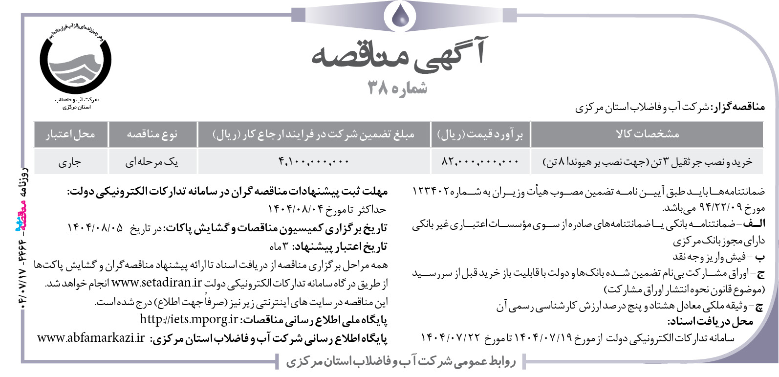 مناقصهگزار: شرکت آب و فاضلاب استان مرکزی