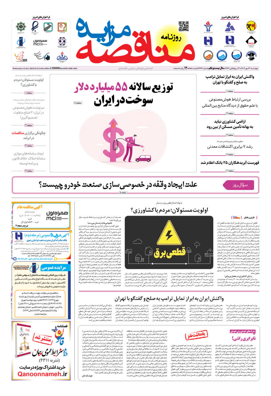 روزنامه مناقصه مزایده ۴۴۶۹ (۰۴٫۰۷٫۲۳)