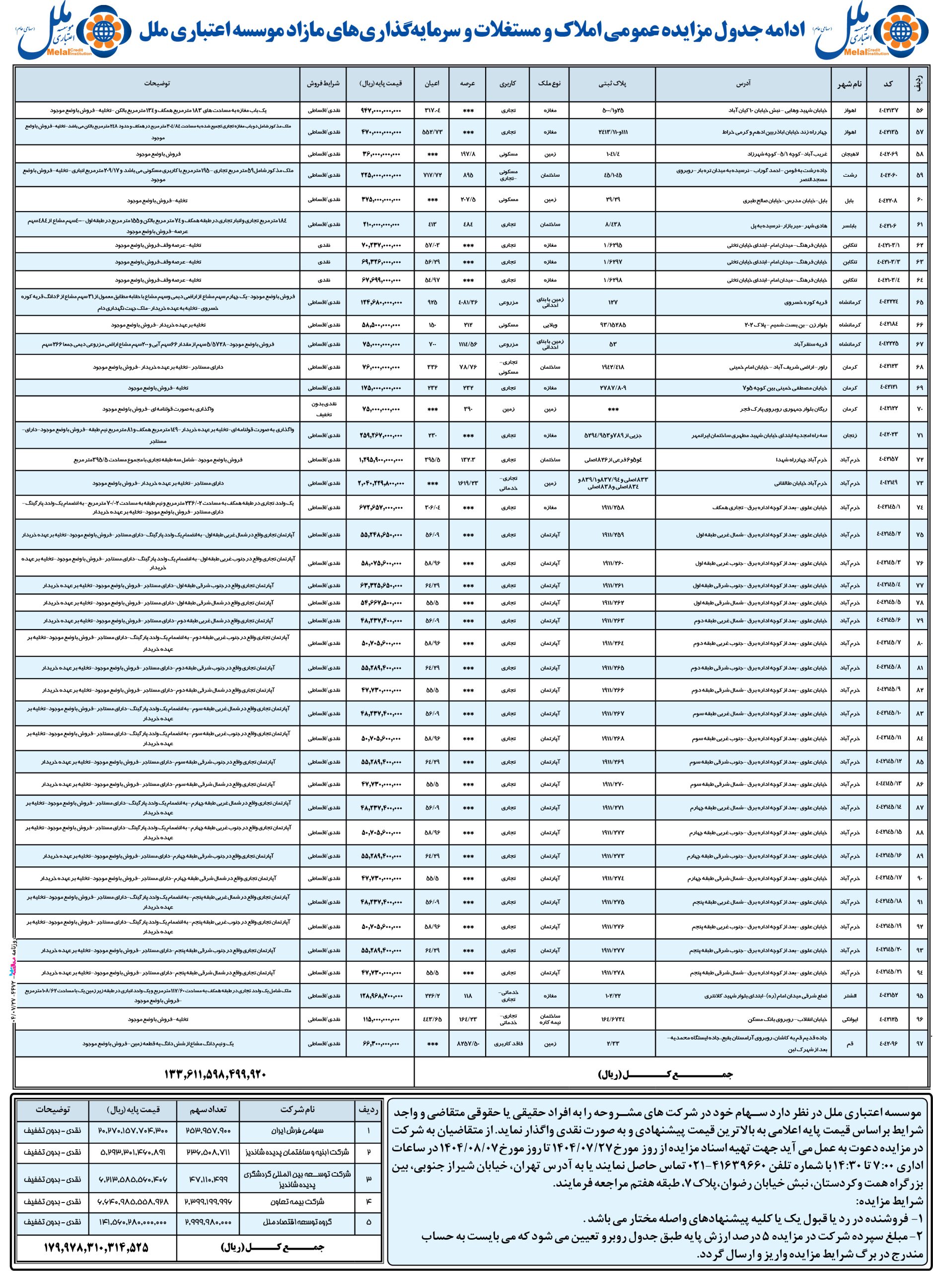 ۴۴۷۲ مزایده – موسسه اعتباری ملل – فروش املاک