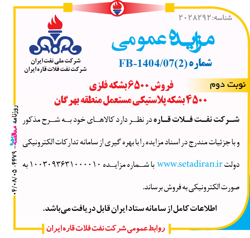آگهي مزايده عمومي شماره FB-1404/07(2)