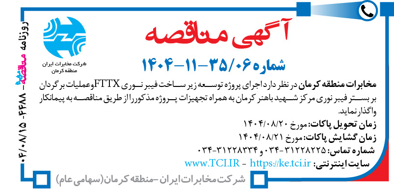آگهی مناقصه شماره ۰۶/۳۵-۱۱-۱۴۰۴