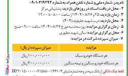 ۷– پیشنهادات در ساعت ۱۲ همان روز باز و قرائت و در همان جلسه بصورت حضوری نیز به عمل خواهد آمد و برنده مزایده کسی است که بالاترین قیمت را پیشنهادیا ارائه نماید. طالبین جهت کسب اطلاعات بیشتر با شماره تلفن ۸۸۸۰۵۲۸۲ حاصل فرمایند.