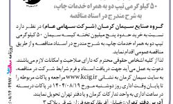 آگهی صورت تقسیم موجودی نقدی شرکت ورشکسته صورت تقسیم موجودی نقدی شرکت ورشکسته نساجی خامنه تهیه و تنظیم گردیده و در دبیرخانه اداره تصفیه امور ورشکستگی تهران به نشانی: تهران، خیابان انقلاب، خیابان قدس، پلاک ۳۱ در دسترس اشخاص ذینفع قرار دارد. بدیهی است پس از انقضاء مدت مقرر در ماده ۴۶ قانون اداره تصفیه […]