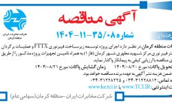 مناقصه عمومی دو مرحلهای نام و نشانی دستگاه مناقصهگزار: شرکت فرادست انرژی فلات، به نشانی تهران، میدان صنعت، بلوار پاک نژاد، بلوار دادمان، خیابان شفق، کوچه آفتاب، پلاک ۲،ساختمان توحید، طبقه ۱ موضوع مناقصه: تامین کسری اقلام تلکام پروژه احداث کارخانه گاز و گاز مایع NGL3200 غرب کارون (EQN 7073 – Shortage of Telecom) شماره […]
